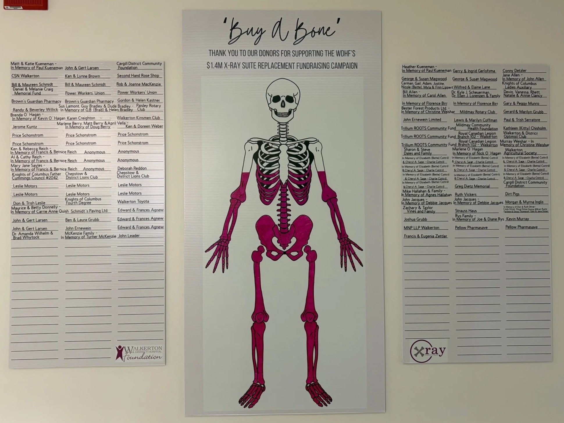 THE WALKERTON & DISTRICT HOSPITAL FOUNDATION IS CURRENTLY RAISING $1.4 MILLION OVER THE NEXT TWO YEARS TO FULLY REPLACE THE X-RAY SUITE IN THE WALKERTON HOSPITAL’S DIAGNOSTIC IMAGING DEPARTMENT. THIS EQUIPMENT INCLUDES THE FLUOROSCOPY TUBE & TABLE, WALL BUCKY & TUBE, PORTABLE UNIT AND DR PLATE. THE CURRENT EQUIPMENT HAS REACHED END OF LIFE AND IS NO LONGER ABLE TO BE SERVICED AS OF DECEMBER 2025. X-RAY EQUIPMENT IS ESSENTIAL TO KEEPING OUR EMERGENCY DEPARTMENT OPERATIONAL, MAKING THIS AN URGENT NEED.