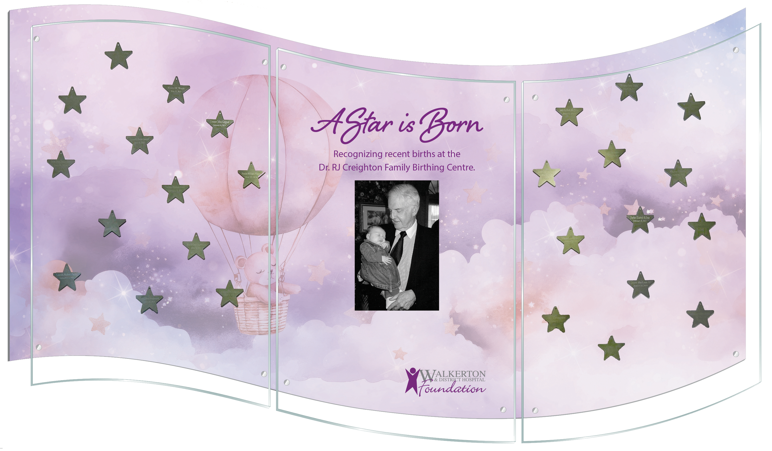 The Walkerton & District Hospital Foundation has created a display piece to recognize the babies born in the Dr. RJ Creighton Family Birthing Centre. If you wish to recognize your baby on the ‘Star is Born’ recognition wall, please read the following information and click the ‘purchase star here’ button below to purchase online. Forms can also be printed by clicking the ‘download form here’ button and returned to the Foundation Office in person or via email – wdhfoundation@sbghc.on.ca. Stars are available for purchase for $100 each. A $50 tax receipt will be provided after purchase.